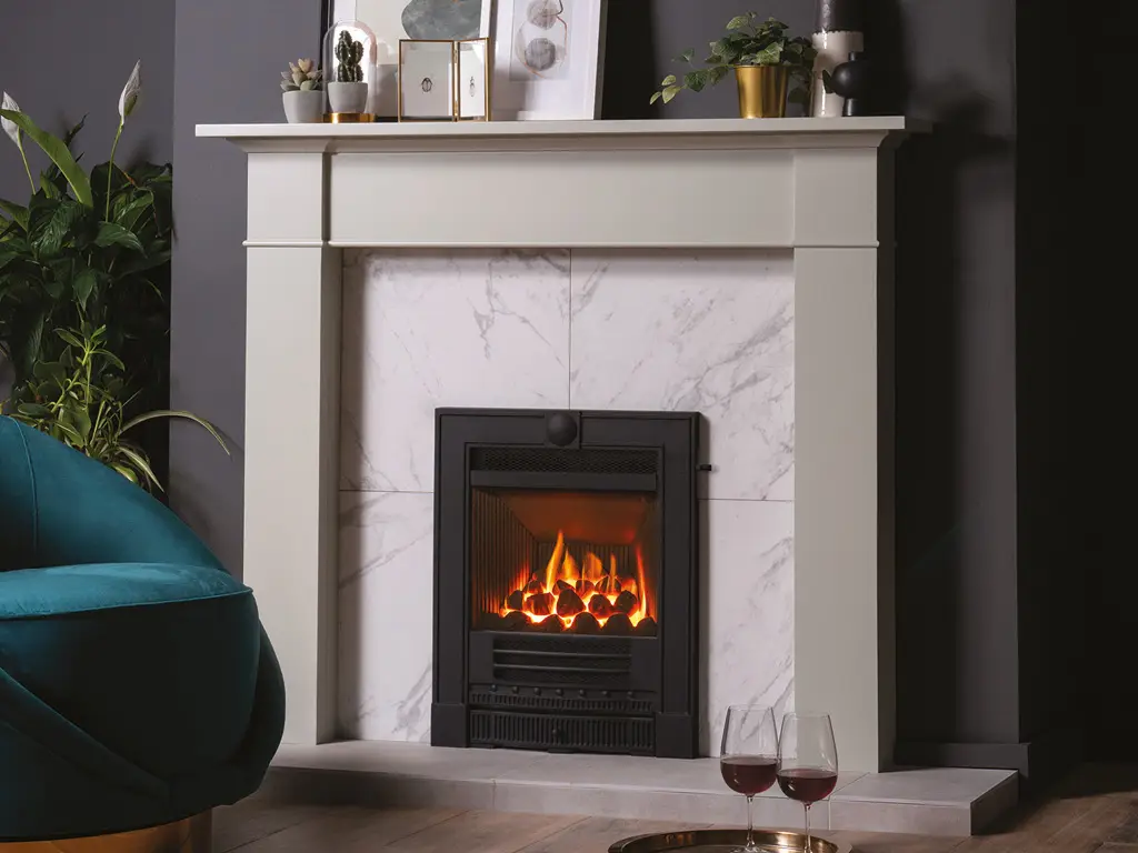 Suitable for all chimney types, this realistic coal-effect fire has the option of either manual or remote control. The convector box draws cool room air into the bottom of the convection chamber. The air is warmed as it passes over the hot surfaces of the chamber and then emitted back into the room via the top convection slot.