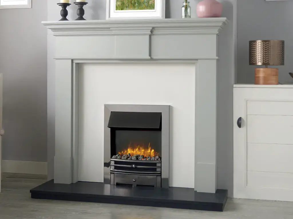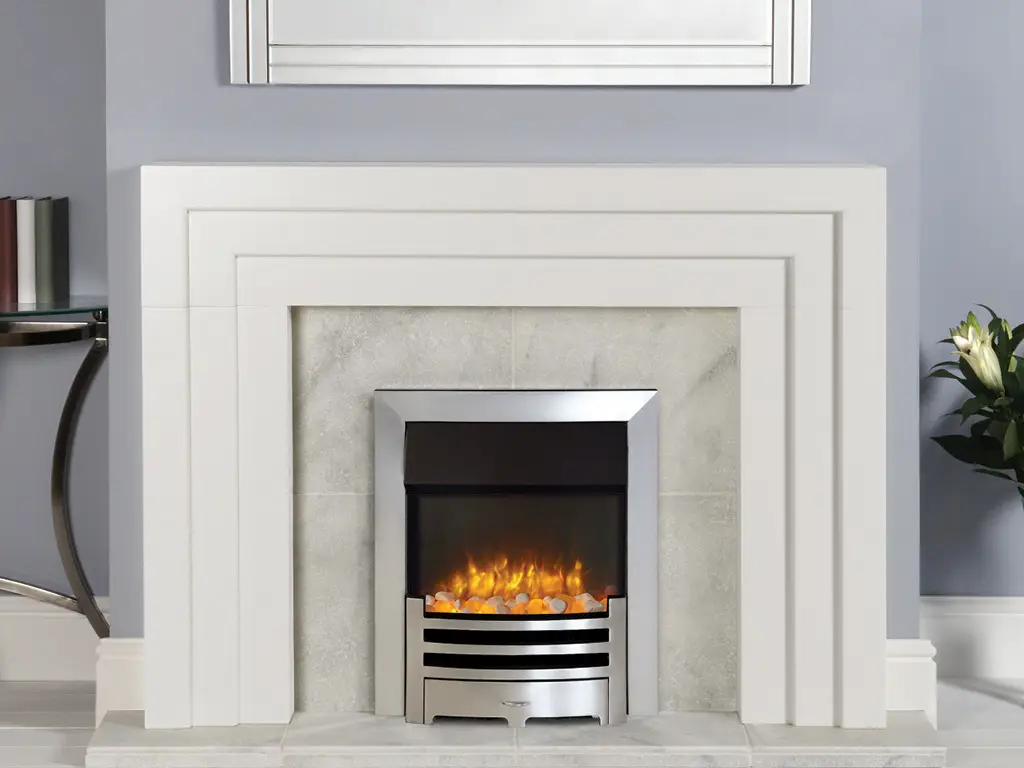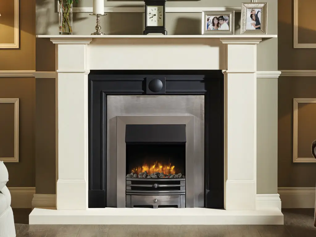 • Fits into standard fireplace opening or a 3” rebated mantel with slip.