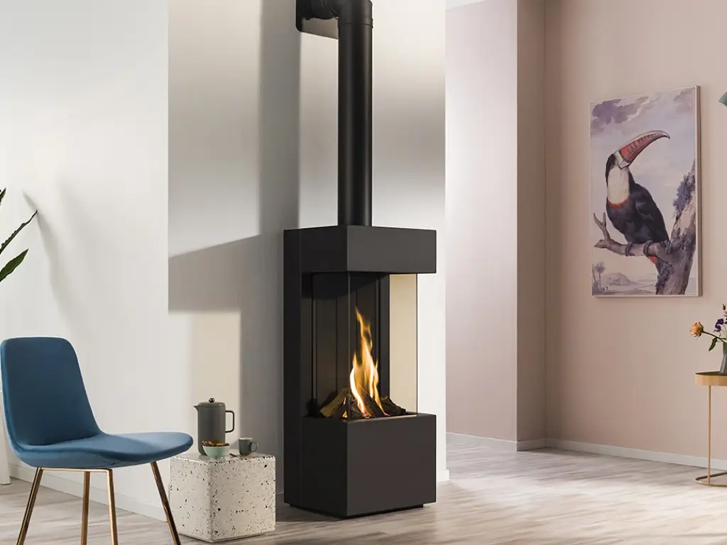 A freestanding, compact, and very stylish gas fireplace, suitable for even the smallest rooms.